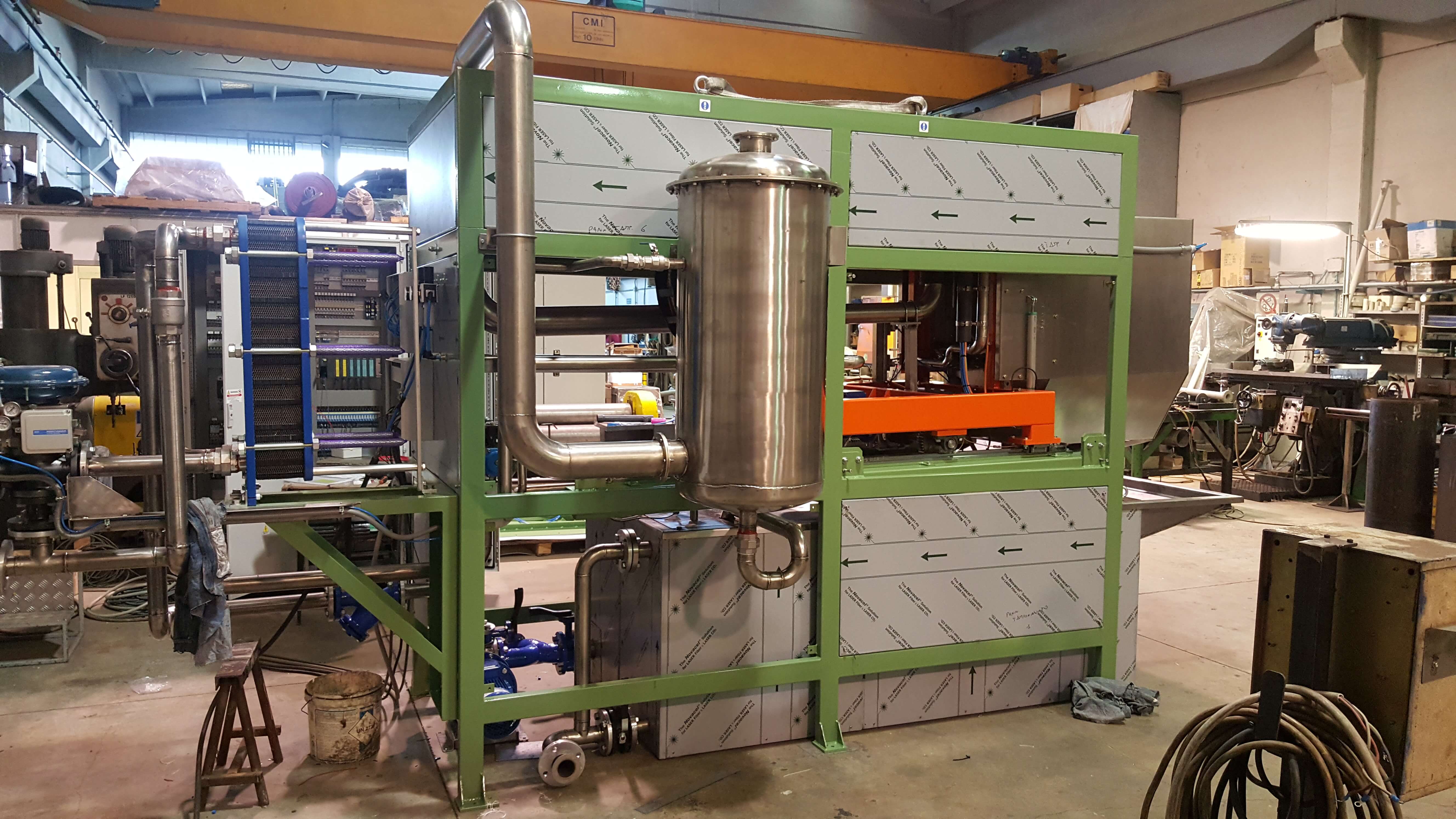 - Condensate recovery system for fumes caused by contact of cooling solution with hot tube surfaces. The system is connected to a central fume suction plant or placed directly on the machine